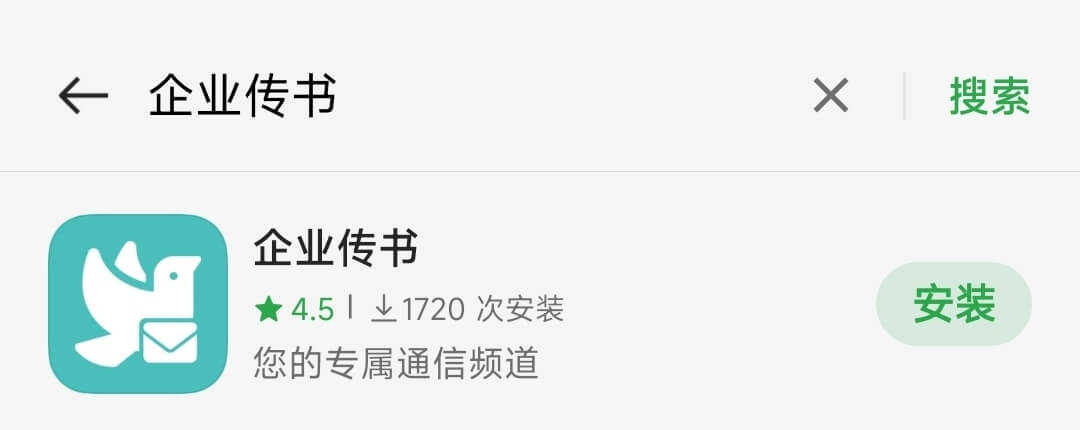 直接在应用商店搜索“企业传书”,即可下载安装App: