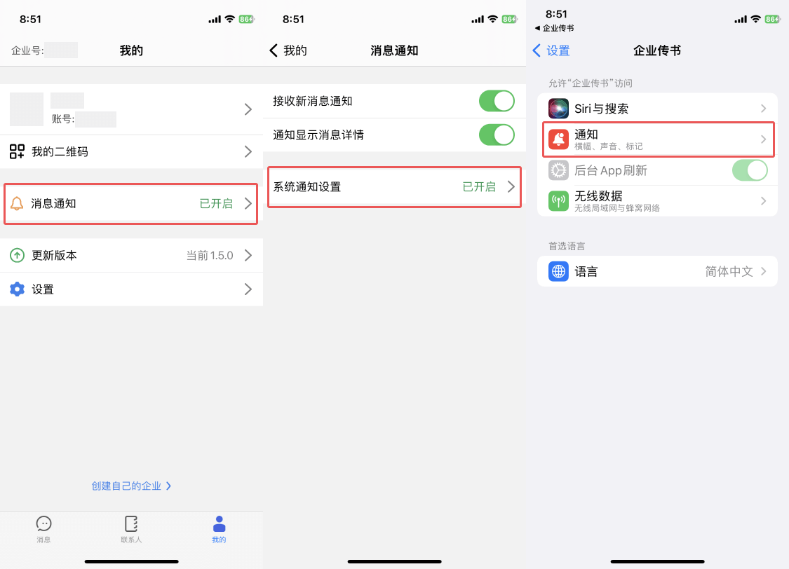 在“企业传书”App 里找到 设置>消息通知>系统通知设置,打开它会到达手机系统的设置页面,再打开“通知”,再开启里面的各项通知功能即可。